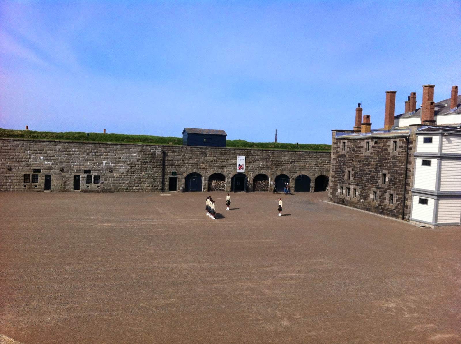 On Friday, we drove into Halifax in the morning and visited the Halifax Citadel there, a very interesting military national historic site on a hill above the city and bay. The first fort was build on this hill in 1749 and the fourth and current fortress was built as a result of the War of 1812. The French and the British were not the best of friends when it came to claiming territories in this end of Canada. The strategic location played a part in the British Navy even until 1906, and then with the Canadian military through World Wars I and II. Very interesting. And the fortress certainly looks impenetrable. Some pictures to follow: